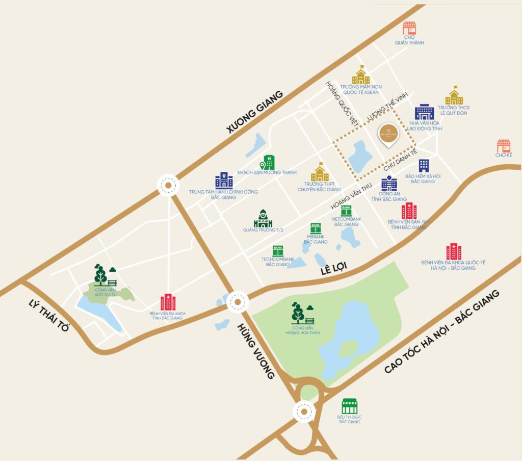 🎪 Kết nối thuận tiện tới các tiện tới các tuyến đường giao thông huyết mạch: Đường Xương Giang, Đường Hùng Vương, Cao tốc Hà Nội Bắc Giang…